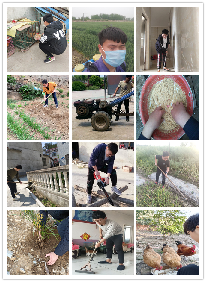 疫情期间我们的同学帮着自己的家人,厚植种子、深耕土地,他们盖秧苗、刨树根、锯木材、施肥料、喂家禽、学会了开拖拉机等,在这难得的“春假”充分将劳动教育播撒在他们热爱的这片家乡土地。