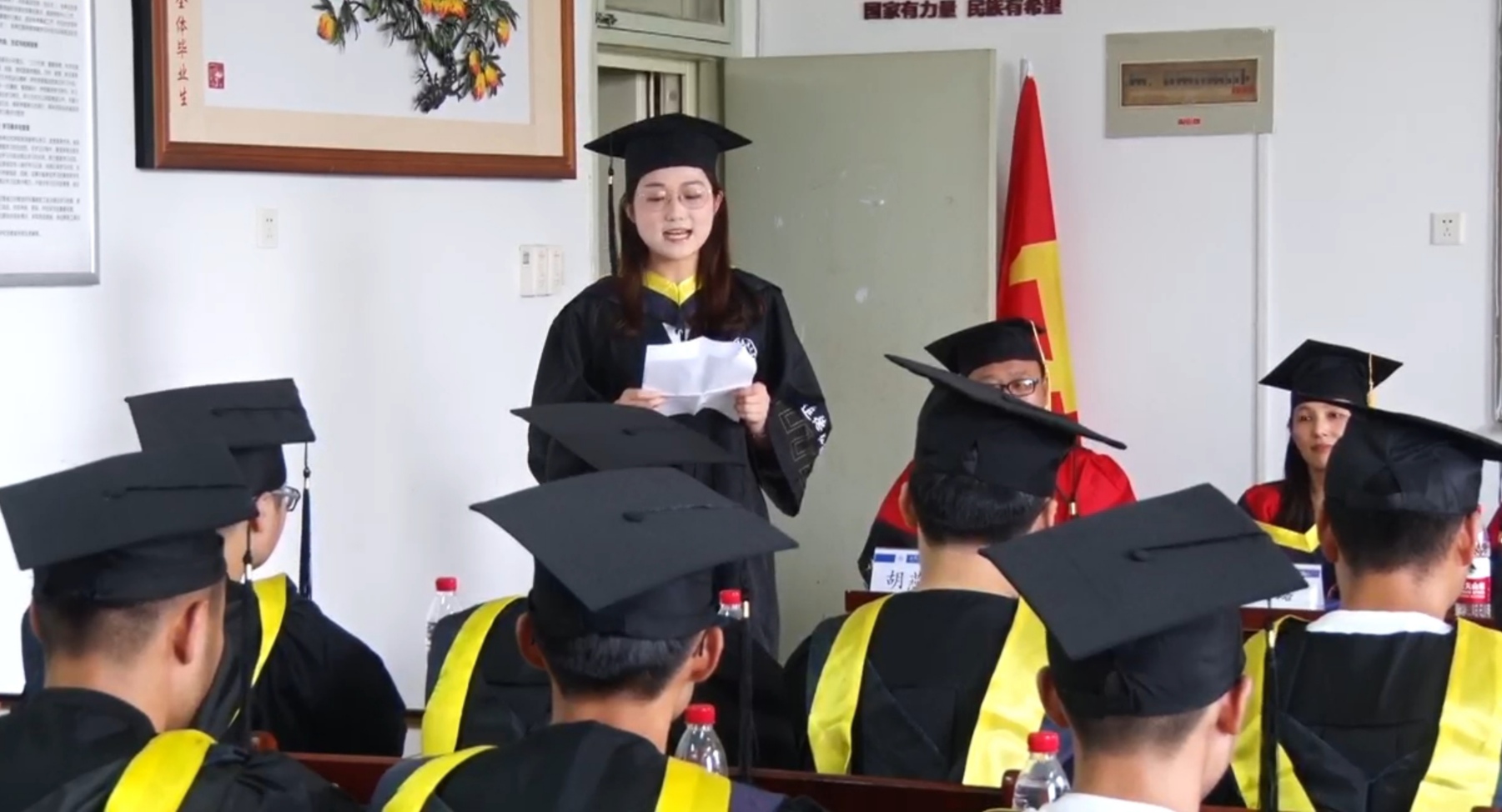 毕业典礼暨学位授予仪式在雄壮的国歌中拉开序幕。学生代表16交通1班何丹同学首先代表毕业班学生深情地回忆了大学的点滴生活,真诚地表达了对母校和师长的感谢和不舍,号召全体毕业生秉承“进德、弘毅、博学、善建”的校训,乘风破浪,扶摇直上。非毕业班学生代表17地质1班张浩向学长学姐们表达了祝贺和祝福,祝贺他们在这不平凡的2020年,圆满完成了学业,带着学术的智慧,生活的理想,踏上了新的征程,祝愿他们一帆风顺,前程似锦!