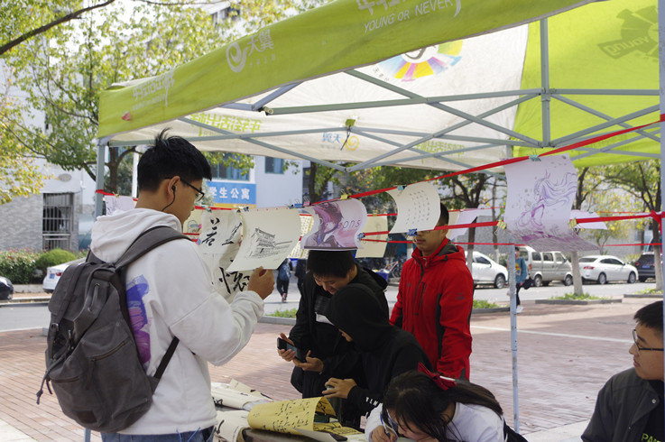 本网讯 为了丰富广大学生的课余文化生活,全面提高同学们的综合素质,进一步营造校园文化气氛,推动我院校园文化建设,11月19日,土木学院“纸短情长”书画展在南食堂门口如期举行。