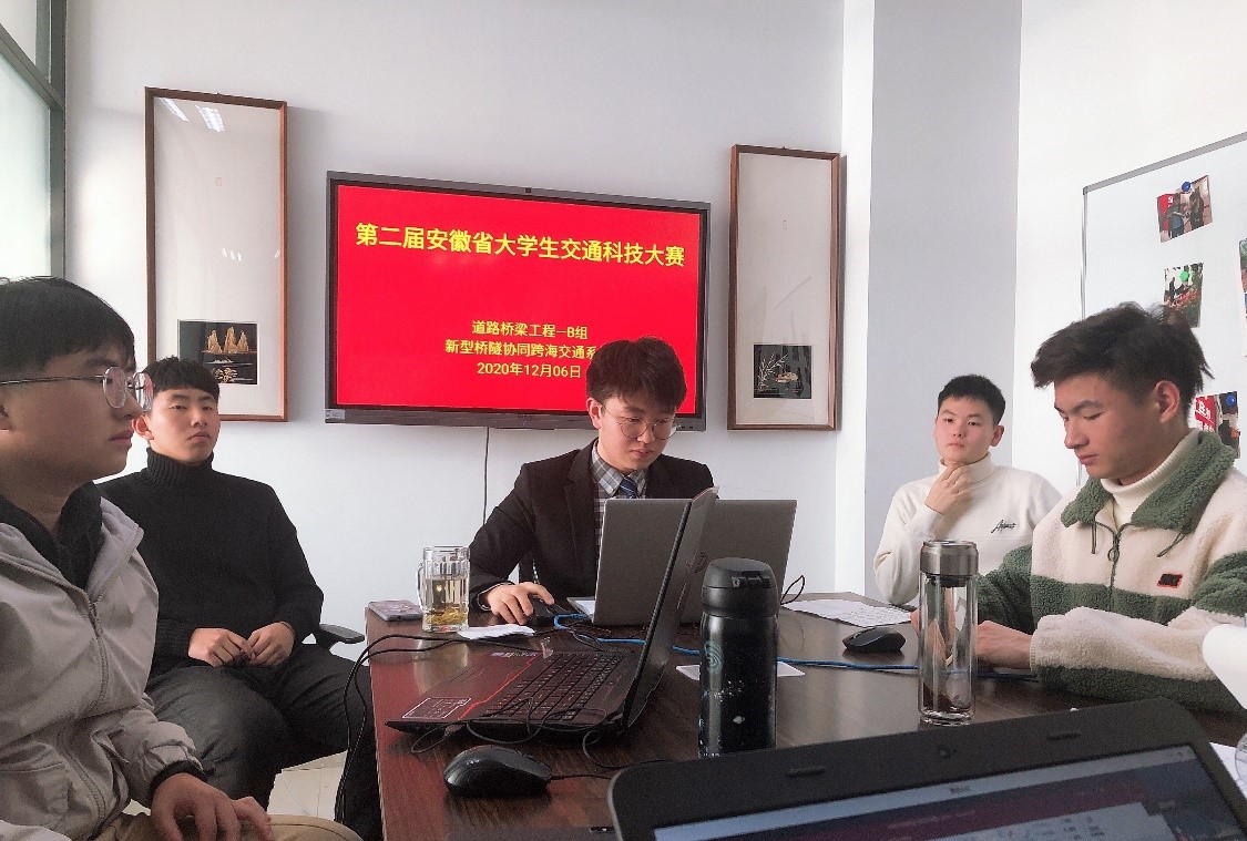 12月5日-6日,第二届安徽省大学生交通科技大赛在安徽三联学院举行。我院参赛作品《新型自平衡可拆卸临时便桥》(学生:张浩、施涛、王辰阳、杨健、章雯雯,指导教师:周宇、许荣盛)、《新型桥隧协同跨海交通系统》(学生:张贺强、奚圣宇、常跃、孙超越、张益伟,指导教师:周宇、石贤增)获二等奖;参赛作品《基于Floyd及KL-means聚类算法的交通运输网络设计》(学生:林琰、孙笑、游秀,指导教师:杨硕、陶明霞)、《联动式桥梁抗震防倾覆装置》(学生:刘甲宝、吕天成、王泽仪、孙镇亮、田佳,指导教师:王芳、刘静)获三等奖。 本次大赛分为“交通运输规划与管理”、“道路桥梁工程”、“载运工具运用工程”、“交通信息与安全(交通大数据)”4个竞赛组。经过校内选拔和赛前模拟答辩,我院共推选出4组队伍参加此次大赛,并顺利通过组委会资格审查、内容形式审查和双盲通讯初评,进入最终决赛。其中1组入选“交通运输规划与管理”组决赛名单,3组入选“道路桥梁工程”组决赛名单。 在常态化疫情防控背景下,决赛阶段全环节采用线上方式举行,为配合赛事会务组的工作安排,保障网络、通讯、视频和语音等符合线上比赛的要求,我院各参赛队伍进行了精心调试和反复演练。经过一天激烈、有序、紧张的答辩和专家委员会审议,我校学子在比赛中获得了评审专家的一致认可,在入围决赛的省内外19所高校和60件作品中脱颖而出,喜获佳绩!