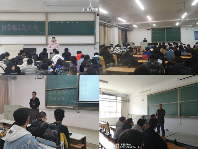 本网讯 为进一步增强学生防诈骗能力,提高大学生自我防范意识和能力,近期,土木学院各班先后由辅导员主持召开防电信诈骗主题班会。 辅导员结合身边案例和网络案例,向同学们说明什么是新型电信网络诈骗。紧接着,辅导员介绍了几种常见电信诈骗类型,包括冒充公检法诈骗、交友投资类诈骗、兼职刷单类诈骗、网购类诈骗、“裸聊”诈骗等,让同学们充分认识到电信诈骗犯罪的严重危害性。班会中,辅导员向同学们再三强调,电信诈骗“易守难攻”,只有我们自己筑牢防骗思想,提高防范意识,树立学习为本意识,不贪图便宜,保护好自身安全,才是最可靠的防骗方式。最后,辅导员小结防诈骗注意事项,让同学们牢记“五不一打”防诈骗,识别电信诈骗“十个凡是”。另外,土木学院辅导员坚持线上线下相结合,除了集中召开班会加强防诈骗教育,同时利用线上平台,实时开展宣传教育。