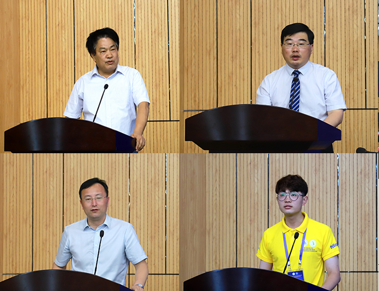 赛事评委专家代表张乾坤代表全体评委郑重承诺,将以积极、热情的态度参与这项工作,在比赛过程中坚决服从组委会的领导,遵守比赛规则,尊重参赛选手,尊重客观事实,坚持公平、公正、公开的原则,以良好的道德风尚和专业水平完成好组委会赋予的职责。党义宣同学代表参赛选手发了言。