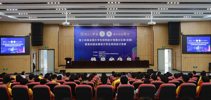 本网讯 2021年6月25日上午,第十四届全国大学生结构设计竞赛分区赛(安徽)暨安徽省第四届大学生结构设计竞赛开幕式在ku游官方实验综合楼学术报告厅隆重开幕。此次竞赛由安徽省教育厅、安徽省大学生结构设计竞赛组织委员会主办,ku游官方、合肥工业大学承办。开幕式由土木工程学院院长吴德义主持。副校长丁克伟出席开幕式,安徽省大学生结构设计竞赛秘书长合肥工业大学土木与水利工程学院常务副院长王静峰、合肥市市政设计研究总院有限公司正高级工程师张乾坤、合肥工业大学教授王辉、参赛学校负责人及指导教师和全体参赛选手共计24所高校、64支参赛队300余人参加了开幕式。