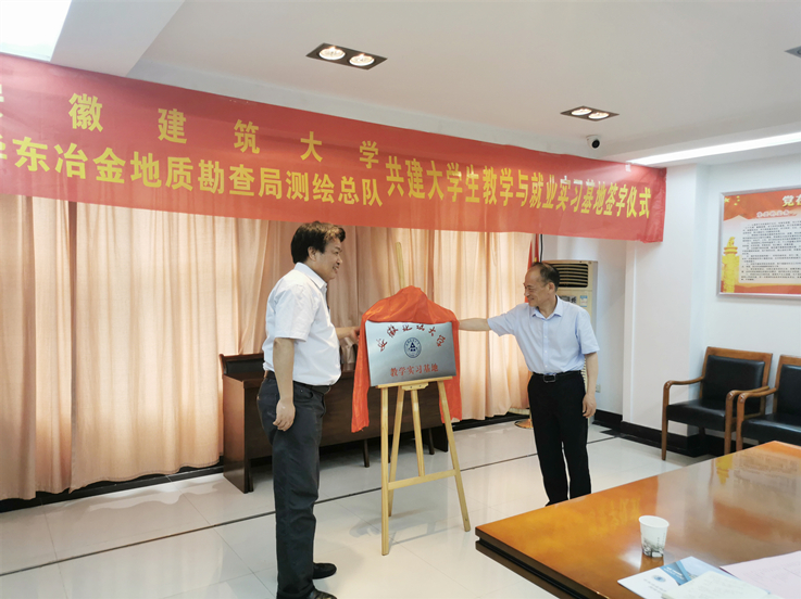 本网讯 6月29日,土木学院与华东冶金地质勘查局测绘总队举行教学实习基地揭牌仪式,签署了基地建设协议,同时对开展产学研合作进行了交流。学院党政负责人、安全与测绘工程系相关老师参会。