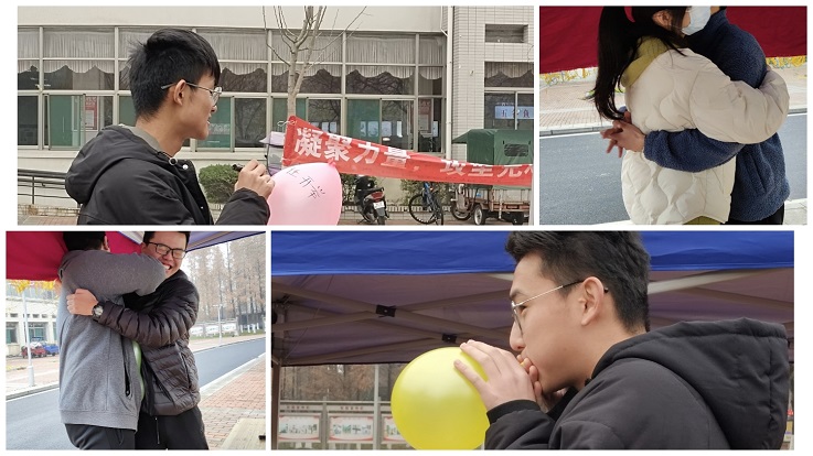 本次心理嘉年华采用线下小游戏的方式开展。同学们两两一组,将气球吹大,系紧,再用记号笔将自己的烦恼写在气球上,随后两人互相拥抱,气球随之破碎,代表着齐心协力共同摆脱烦恼,同时在寒冬中体会到彼此相互扶持的温暖,活动得到了同学们的一致好评。 此次活动让同学们释放了压力,感受到了来自他人的鼓励和帮助,有效地调整了同学们的心理状态,为推进校园心理建设作出了一定的贡献!(图/文:范瑾 黄新杰 审核:王媛)