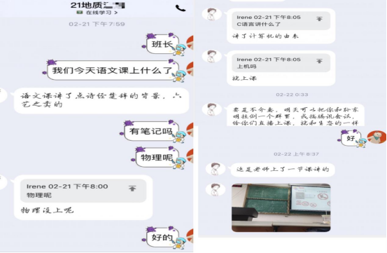学业帮扶有益补充。学院积极发挥学生干部作用,安排主要学生班干开展“远程”帮扶,传达课程任务,提供学习笔记,实施知识答疑,为未返校学生提供精准化的学业帮助,让居家的学生也能体会集体归属感。