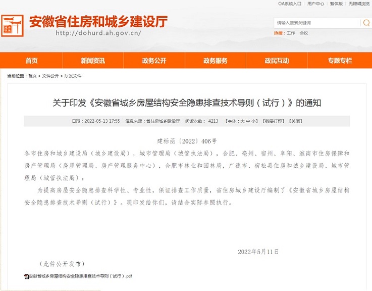 | 我校作为主编单位编制《安徽省城乡房屋结构安全隐患排查技术导则》 |