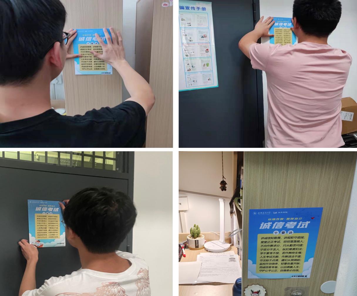 诚信之风的构建需要在广泛的日常宣传中潜移默化地印刻在同学们的脑海之中,为了使每位同学把诚信品质铭于心、践于行,土木学院将汇集凝练的诚信考试“十要诀”印制成专门的宣传贴纸,分发至每个宿舍和每个人,要求同学们主动张贴在宿舍墙上、写字台前等醒目位置,实现张贴全覆盖。引导学生认真牢记,入脑入心,深刻领悟口诀的内涵和思想,并时刻警示自己以此为约束,规范考试行为,积极做诚信考试的宣传者和践行者。