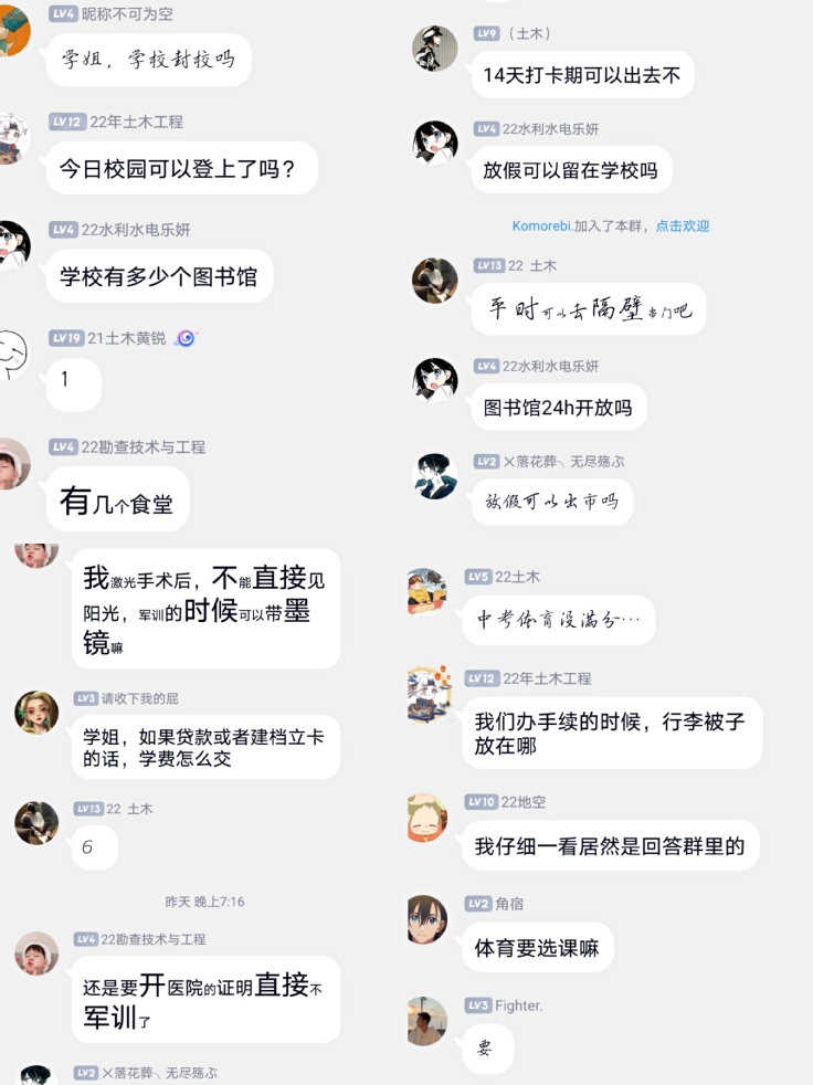本网讯 十年寒窗苦读,换来今日成就,十年拼搏岁月,迎来今日大学舞台,十年风风雨雨,送来今日梦想启程。为使新生顺利完成入学,提前了解大学生活,土木学院于8月12日召开线上新生入学流程讲解及专业情况介绍会。 土木学院根据ku游官方《新生手册》内容及迎新安排,对土木学院新生开展入学流程讲解。对暑期新生线上签到、缴费、线上报道等问题进行集中解答,引导新生完成入校“第一步”。并加强22级新生暑期安全教育、提醒新生警惕诈骗。专业新生群内有直系学长学姐们为新生进行专业介绍,包括主要课程、学习方向、内容充实度等方面,满足新生即将踏入大学渴望了解专业的需求,减少新生对未来大学生活的不确定性。
