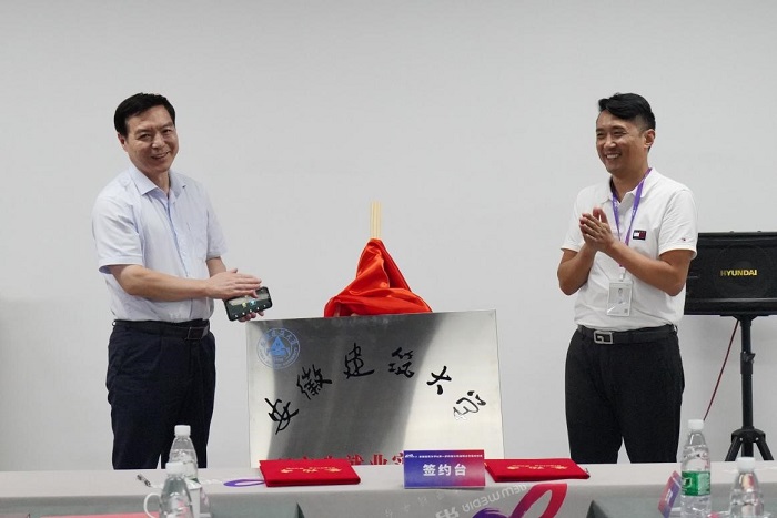 会后,蔡国军与第一房公司总经理尹娜娜分别代表校企双方签署了产学研战略合作协议,黄显怀与王仁华共同为“ku游官方研究生就业实践基地”揭牌。