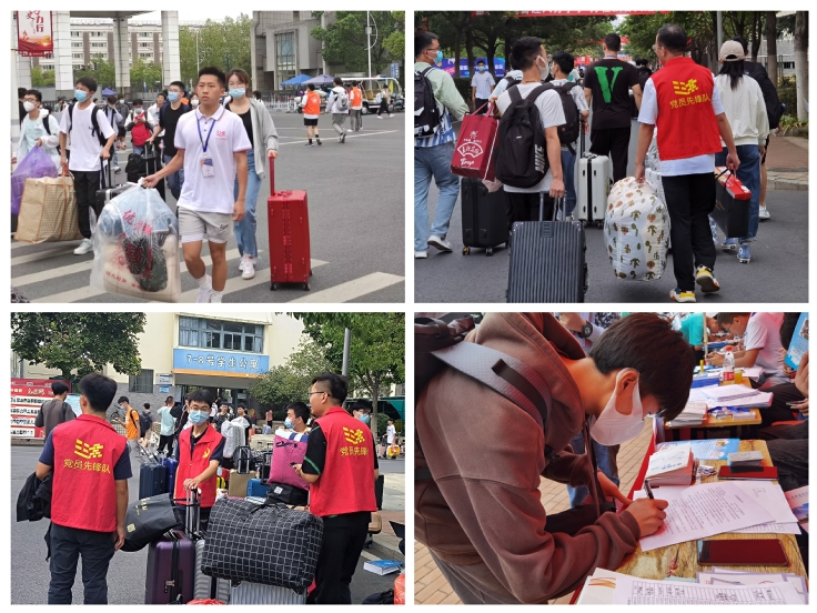 为迎接2022级新生,土木学院领导班子提前进行了精心准备和周密部署,在各个方面做好疫情防控工作,保障师生安全。早晨6点30分,土木学院党员先锋队、学生会志愿者、学生志愿者三方组成的志愿者团队已经在南大门、志愿服务站、行李暂存处、新生报到处全阵以待,并且再次确认了迎新任务的分配:校门口及南大门志愿服务站负责分流土木新生,帮忙运输行李和引导新生至报到点完成报到;7号楼报到点负责发放新生手册、住宿卡等物品并为有需要的新同学将行李送至宿舍;11栋行李暂存处负责女生行李的暂存和搬运。校园内各个地方也安排了志愿者轮值,随时给新生提供帮助,确保哪里有需要,哪里就有土木学院志愿者的身影。
