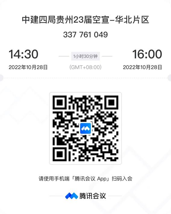 中建四局贵州投资建设有限公司2023届秋季校园招聘简章 华北高校空中宣讲会 时间:10月28日(周五)下午14:30-16:00 腾讯会议号:337-761-049