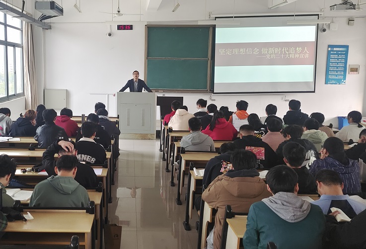张锐就党的二十大精神进行了宣讲,号召大家用党的科学理论来武装思想,要求要将自身发展与时代挂钩,积极响应党对青年的号召,做对党忠诚的坚决践行者。