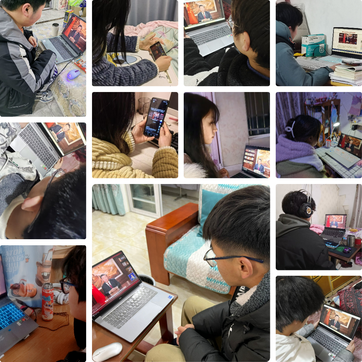 本网讯 为深入学习宣传贯彻党的二十大精神,为新中国所取得的伟大成就喝彩,12月31日晚19点整,土木学院的同学们自发地在电脑和手机前收听收看习近平主席发表二〇二三年新年贺词。
