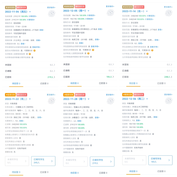本网讯 岁月不居,过往可鉴。2022年,在学校党委行政正确领导下,土木学院以习近平新时代中国特色社会主义思想为指引,牢牢把握立德树人根本任务,坚持“以生为本,全员育人”,在开拓创新,提质增效,凝聚合力,赋能成长上下功夫,积极探索学生教育管理新模式,全面提升学生综合素质,促进学院和谐稳定发展,书写了一份亮眼的育人答卷。 坚守一线 同心同向,守护生命健康安全 2022年,面对复杂多变的新冠疫情,学院全体师生主动将思想和行动统一到学校党委的决策部署上来。按照学校要求,专题部署,精准推进,及时发布《致全校学生的一封信》《返校须知》及各类安全温馨提示。引导学生加强安全防范意识,主动配合完成学校各项疫情防控工作,共同做好全校师生的安全保障。严格落实疫情防控日报告、零报告制度,累计收集学生健康及疫情各类表格550余份,上报550余份;做好疫情期间老生返校、新生入学健康信息核查和晨午晚检工作,累计收集学生健康信息60余万条;建立党员先锋队和包保责任制,护佑学生健康。