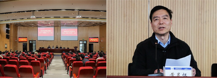 本网讯 2月28日下午,由党委宣传部主办、土木工程学院和科技处承办的第84期易海大讲堂在南校区实训综合楼二楼报告厅举行。国家级高层次人才、国务院政府特殊津贴专家、东南大学二级教授、博士生导师徐赵东教授,为我校师生带来了一场题为“结构振动控制安全监测与多灾害智慧防灾”的精彩报告。报告会由校党委副书记、校长黄显怀主持,土木工程学院领导班子、部分骨干教师、研究生参加。 徐赵东教授在此次报告中以灾害监测与防护领域的成果掠影为主题。围绕有害振动(地震、强风、环境振动等)的控制技术,对粘弹性减振控制、磁流变智能减振控制和多维隔减振控制,城市密集区域多灾害分析等方面的前沿进展进行了详细介绍。