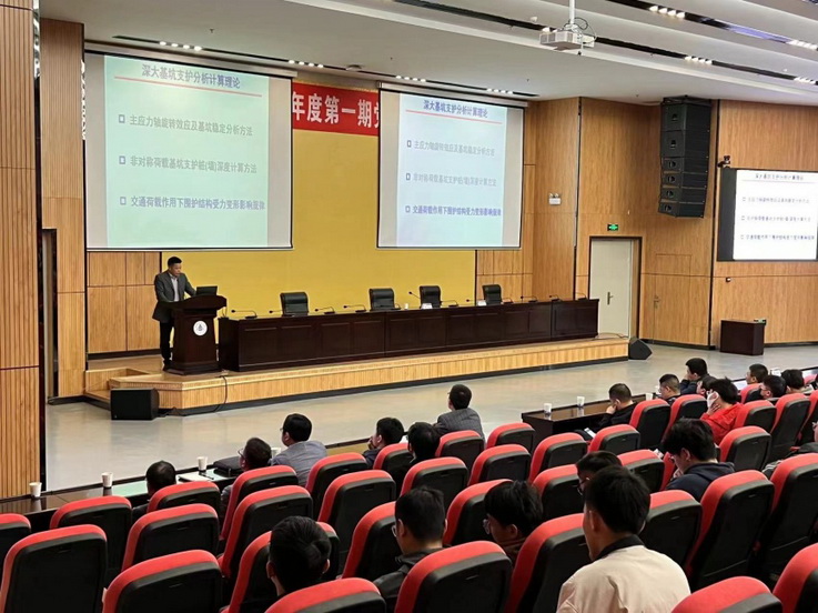 本网讯 3月16日下午,由宣传部主办、土木工程学院承办的第87期易海大讲堂在南校区实验综合楼二楼报告厅举行。华东交通大学党委副书记、校长徐长节教授为我校师生带来了一场题为“深厚软土地区深基坑围护科技创新及重大工程应用”的精彩报告。报告会由校党委副书记、校长黄显怀主持,土木工程学院领导班子、部分骨干教师、研究生参加。