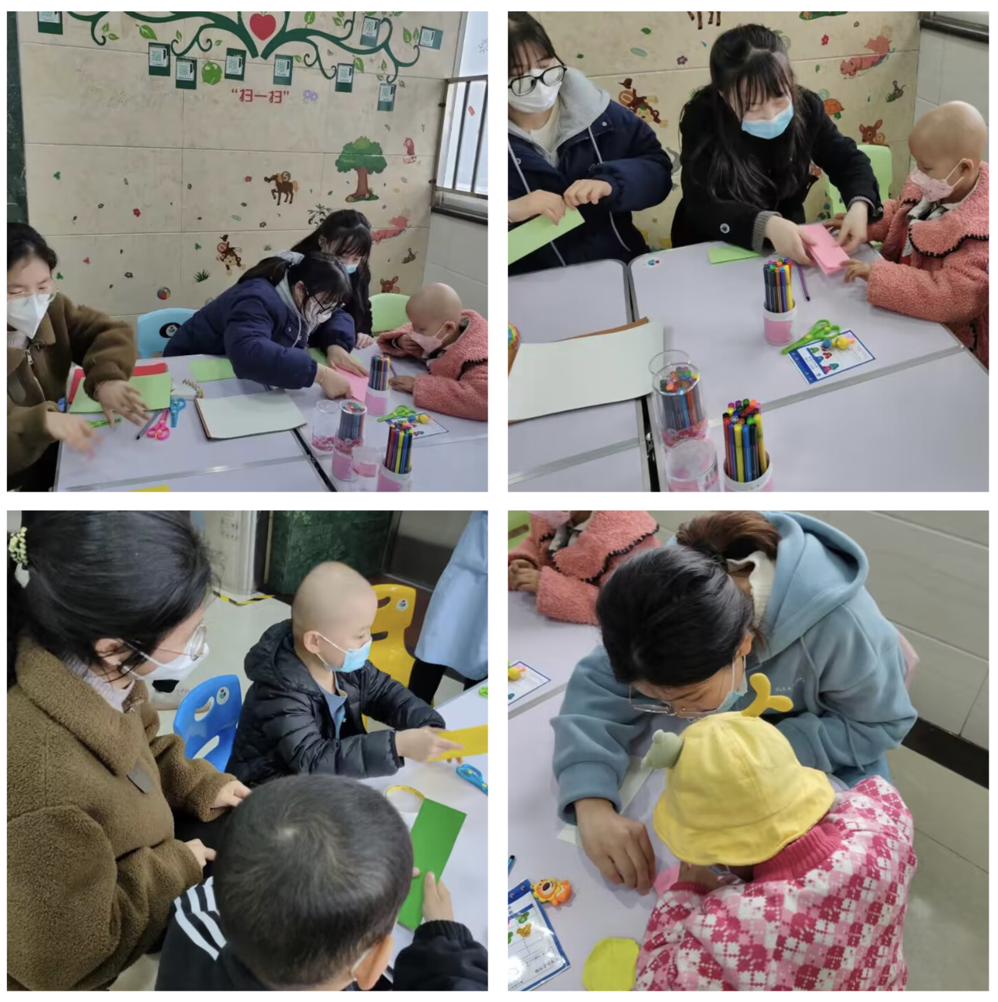 本网讯 为大力弘扬雷锋精神,推动学雷锋活动更深入、持续、有力,3月23日下午,土木学院安全工程学生党支部开展以“学雷锋‘益’起来——关爱患病儿童”主题特色党日活动。党员同志本着“让生命影响生命,用爱心传递希望”的初衷,用行动诠释新时代雷锋精神,以实践彰显党员的责任担当。 活动当天,党员同志冒着大雨抵达安徽省儿童医院儿童血液肿瘤科病房,经过前期消毒准备佩戴口罩后,党员们在病区见到了可爱的孩子们。通过护士长的介绍,大家很快认识了每一位小朋友。活动期间,党员同志与小朋友们一起制作彩色书签、生日贺卡、玩具纸偶等手工作品,还热情地教小朋友唱儿歌,给他们讲故事,在欢快的氛围中大家度过了意义不凡的下午。活动结束后,看着小朋友们依依不舍的眼神,大家牵起每一位小朋友的手并与他们约定鼓励要好好吃饭,勇敢与病魔斗争。