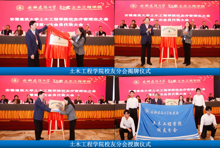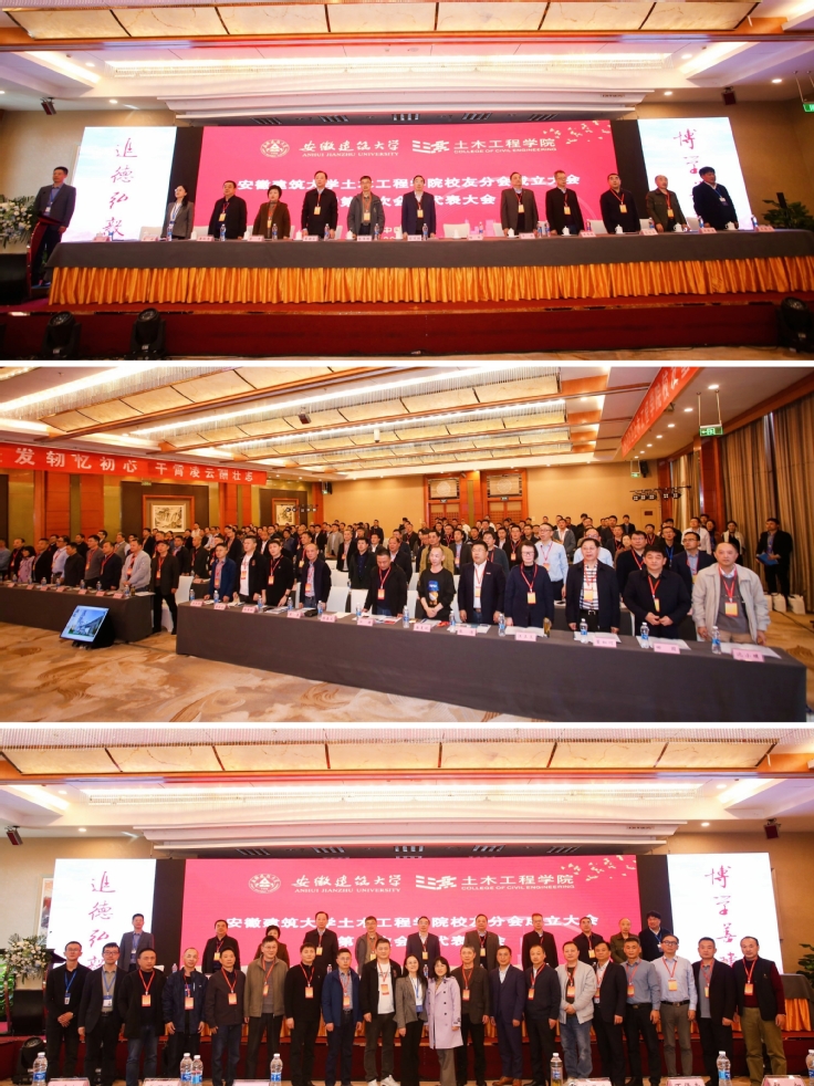本网讯 4月8日,ku游官方土木工程学院校友分会成立大会暨第一次会员代表大会在合肥市滨湖新区世纪金源大饭店隆重召开。校领导孙道胜、蔡新立、蔡国军、李早,退休校领导程桦、干洪、张伟林、王志建,安徽中澳科技职业学院党委书记汪源浩,南京工业大学土木工程学院党委书记张涛,校友会秘书长袁如恩及土木工程学院党政领导班子全体、校友代表、教师代表、辅导员代表、学生代表等共计190余人出席大会。会议由土木工程学院执行院长张宁主持。 六十五载风雨路 土木校友今相逢 人间最美四月天,不负春光与时行。来自全国各地的土木工程学院校友一起踏着细雨繁花、满目春景,如约而至,齐聚一堂,共同见证土木工程学院校友分会成立。大会采用线上直播同步进行,各地校友、在校生参与观看,共计40余万次点播量。