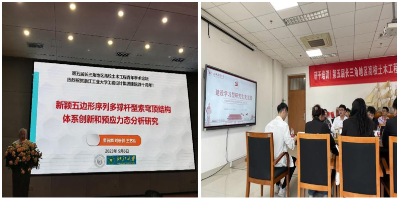 本网讯 近日,第五届长三角地区高校土木工程专业青年学术论坛在浙江杭州召开,本次论坛由浙江工业大学主办,来自长三角地区高校的师生代表参会。土木学院党委副书记马智鑫、专业教师翟朝娇带领四名2022级硕士研究生前往参加。