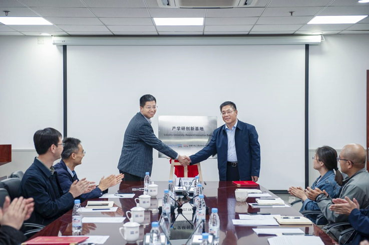 张宁介绍了近些年学校和土木学院的发展情况,表示安徽华电公司作为国家高新技术企业与高校具有广泛的合作空间,期望通过此次的回访交流,凝聚双方优势力量,在各方面寻求创新突破、务实合作,实现校企双向提升、共同发展。施国栋就人才联合培养、项目联合申报等方面进行了交流,强调利用双方所长达到共赢发展。陈东邀请公司领导和高级技术人员到学校兼职校外专业导师。最后,校企双方本着深入合作和长期合作的愿景,举行了产学研创新基地的揭牌活动。