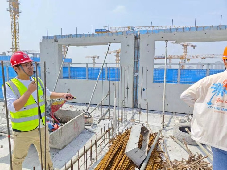 现场的工作人员强调了参观过程中需要关注的重点内容、注意事项等,让学生有针对性的进行参观和学习,提高毕业实习的效果。随后在项目工程师的带领下,逐层参观了施工现场,耐性地为学生讲解了现场施工管理、质量保障措施、装配式构件吊装、灌浆套筒连接等相关知识。参观过程中,学生积极了解和学习施工现场情况,并就参观过程中遇到的具体问题,主动向随行的老师和工程师请教,一问一答中加深了学生对课堂学习知识的理解。