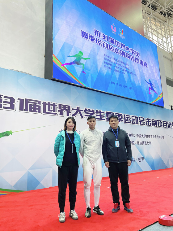 世界大学生夏季运动会是世界体育重要赛事之一,也是国际大学生共同参与、彼此交流的重要盛会。本次选拔赛将选拔出优秀的运动员组建中国大学生击剑代表团。赛事为期2天,均为个人单项比赛,通过小组赛、单败赛、决赛等轮次最终产生6枚金牌。我校运动员经过紧张激烈的竞争,凭借着他们丰富的经验与突出的个人能力取得了一金两铜的优异成绩。毛本年获男子花剑冠军;郑媛媛获女子重剑季军;孙若禺获女子佩剑季军;龚鑫淼、宋雯旭分别获得男子重剑和女子佩剑的个人第五名。