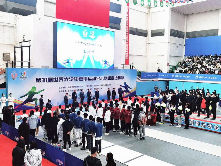 本网讯 4月10—11日,第31届世界大学生夏季运动会击剑项目全国选拔赛在吉林师范大学体育馆举行,本次比赛由中国大学生体育协会主办,吉林省学生体育协会承办,吉林师范大学协办。共有来自我校、清华大学、北京体育大学等全国21所高校的111名运动员参赛。