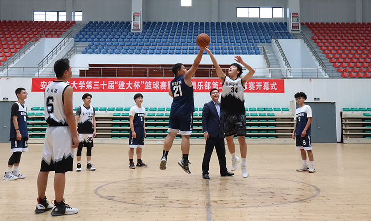 本网讯 为庆祝中国共产党成立100周年,落实《关于全面加强和改进新时代学校体育工作的意见》的文件精神,增强同学们身体素质,弘扬校园体育文化氛围,2021年4月21日下午,第三十届建大杯篮球赛暨篮球俱乐部第二届篮球赛在南校区体育馆开幕。来自十一个学院和研究生院的运动员代表参加了开幕式。