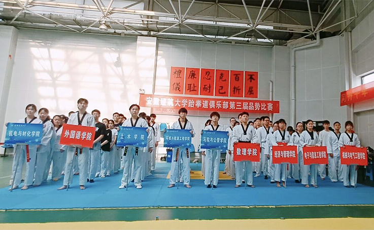 本网讯 为庆祝中国共产党成立100周年,贯彻落实《关于全面加强和改进新时代学校体育工作的意见》的精神,5月30日,安徽建筑大学跆拳道俱乐部第三届品势比赛在南区体育馆圆满落幕。来自全校九个学院共270名同学参加了本次跆拳道盛会。