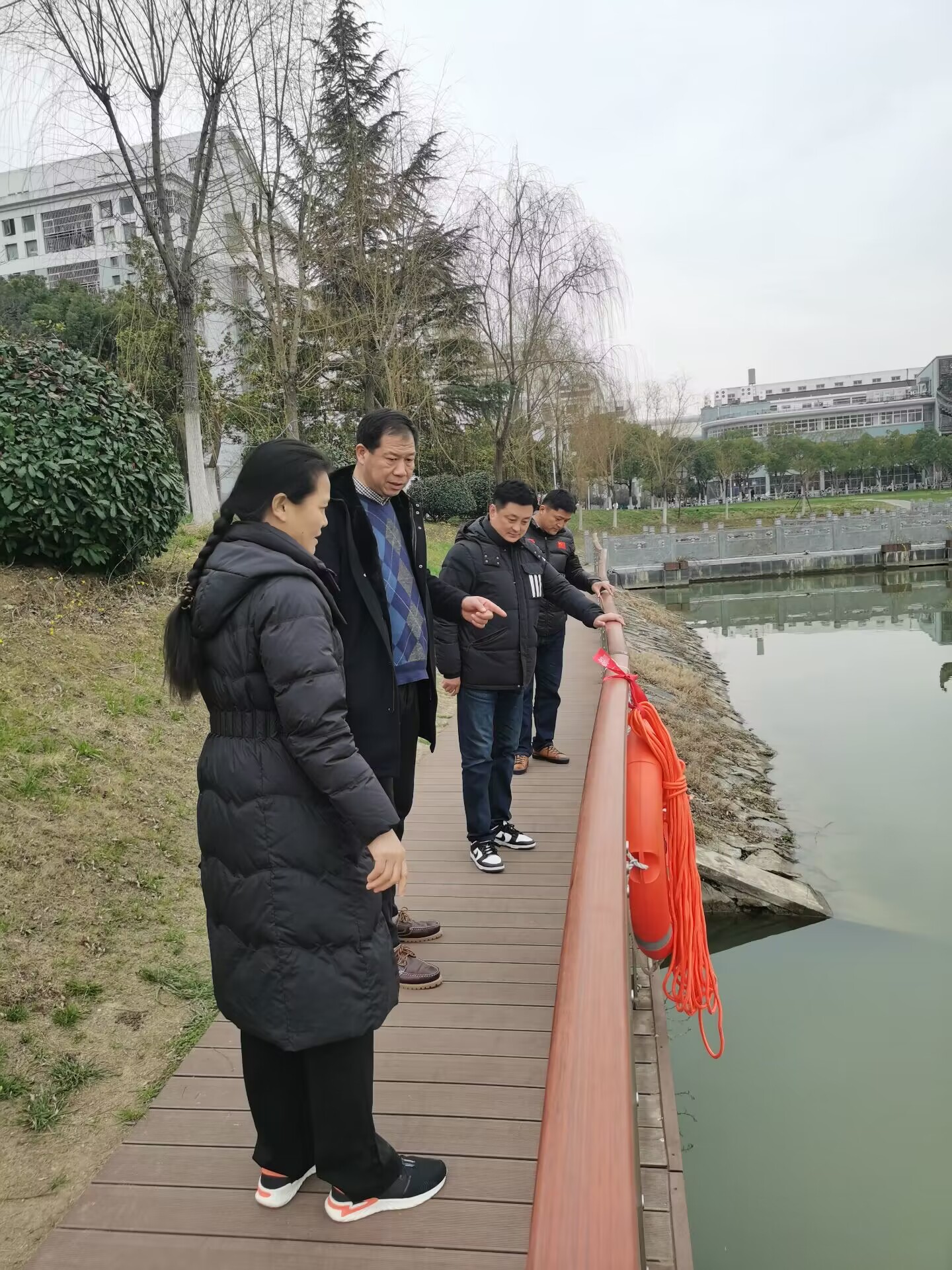 本网讯 为贯彻落实习近平总书记关于体育强国建设的重要指示和全国教育大会精神,深化具有中国特色体教融合发展,推进体育教育俱乐部制教学改革,我校拟依托易海现有的优质资源,拓展具有民族特色的龙舟项目。2月22日下午,安徽省水上运动管理中心主任张树林莅临我校,就开设龙舟特色课程的自然资源、硬件设施以及安全防护措施等相关问题进行现场勘查指导,学校相关职能部门和学院领导及老师陪同考察。