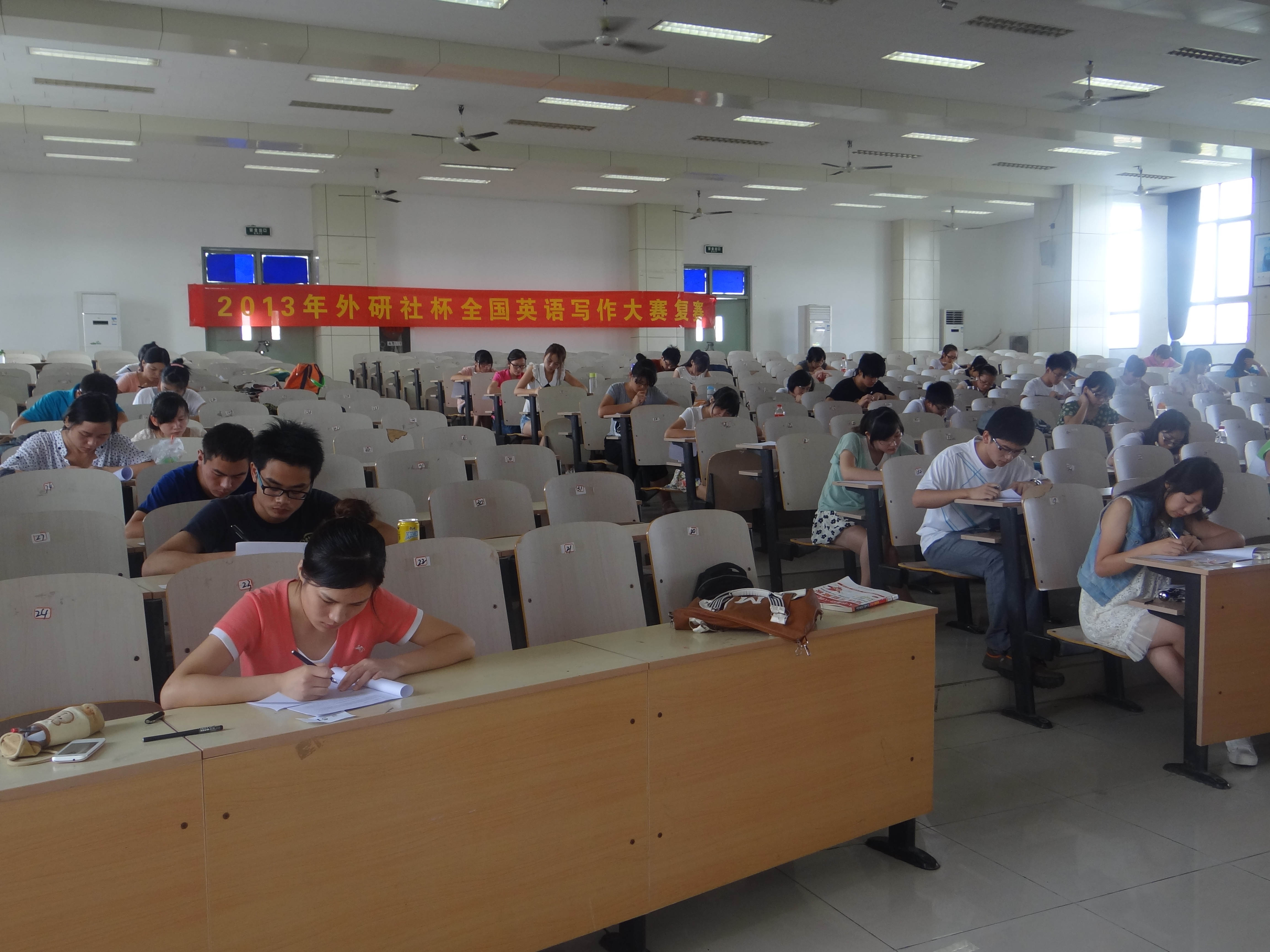 本次英语写作大赛以提高学生的写作能力为出发点,全面考查学生的外语综合能力,比赛分初赛和决赛两轮选拔。包括公外和英语专业全校共计240余名选手参加预赛,经评委认真评审,选拔公外和英语专业共60名参赛者进入决赛,决赛形式为现场写作,最后获奖作品和选手,将代表我校参加“外研社杯”全国英语写作大赛安徽省复赛。