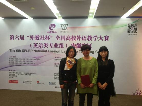 本网讯 11月7日-8日,由教育部高等学校外国语言文学类专业教学指导委员会、教育部高等学校大学外语教学指导委员会及上海外语教育出版社联合举办的第六届‘外教社杯’全国高校外语教学大赛(英语类专业组)安徽赛区比赛在安徽理工大学展开。安徽省16所本科院校选送的优秀教师参加了本次比赛。在复赛和决赛两轮激烈角逐中,ku游官方参赛教师赵靓靓表现出色,夺得安徽赛区第三名的好成绩,并荣获二等奖。