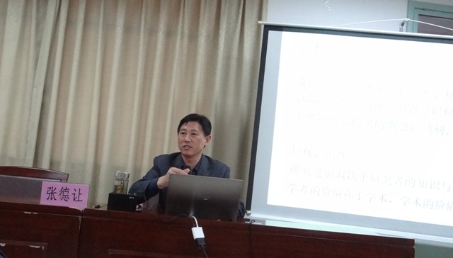 讲座中,张德让结合国家社科基金申报经验和多年科研管理工作心得,从国内外阐释学研究实例分析入手,一一解读了课题申报的准备、选题、综述、研究思路等若干要点,介绍了多种行之有效的科研方法,提出一系列建设性指导意见。针对年轻教师在科研和项目申报中遇到的普遍问题,张德让结合申报文本悉心给予指导,鼓励大家做好研究资料准备,积极涉猎原文文献,搭建课题组协同创新,实现项目申报突破,并将科研成果运用到教学中去。