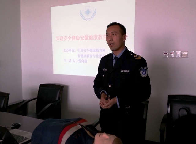 张向前向听讲教师系统介绍了各类紧急情况下的救护知识、空气污染的健康防护措施,并结合教师工作岗位特点,重点讲授了对肩周炎、颈椎病等教师常见职业病的预防和保健知识。在现场演练环节,教师结合所学知识进行亲身体验,互动气氛热烈。