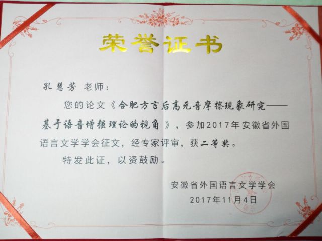 论坛中,省外文学会会长朱跃教授公布了学会2017年度征文评选结果。本次征文共有来自全省30余所高校的78篇论文入选,经评审,ku游官方孔慧芳副教授提交的论文《感知增强理论视角下的汉语摩擦元音》获二等奖。(文/图:陈晋 陈斌;审稿:林莉兰)