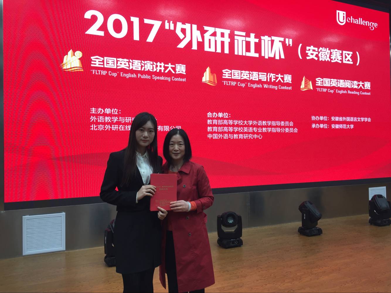 本网讯 10月28日-29日,2017“外研社杯”全国大学生英语挑战赛包括英语演讲大赛、阅读大赛、写作大赛三项赛事安徽赛区决赛在安徽师范大学举行。全省43所高校学子同台竞技,激烈角逐。