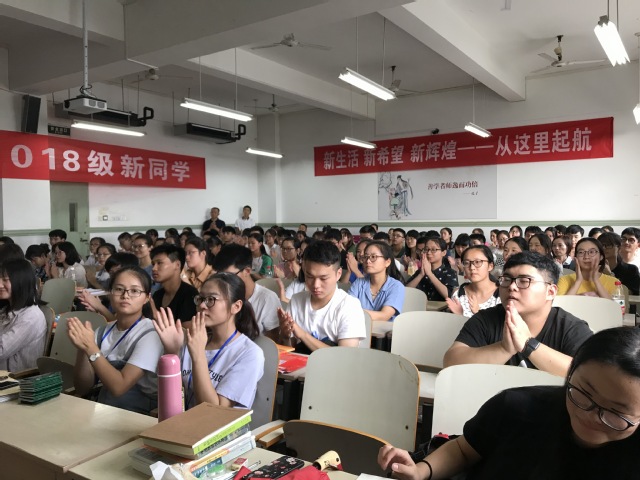 外国语学院院长林莉兰教授致辞,向2018级新同学表示热烈的欢迎和诚挚的祝贺,对2018级新生在学习、生活、工作等多个方面对新生提出了要求和希望,同时勉励全体新生继续刻苦学习,奋发进取,学好专业技能,全面发展,争做一名优秀大学生。