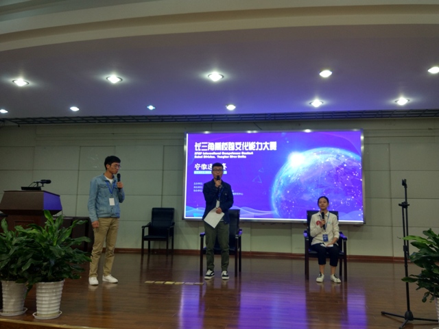 本次比赛由安徽师范大学承办,分三个部分进行:跨文化案例展示与分析、情境评述、讲述中国故事。我校代表队由外国语学院2016级英语专业汪旭、吴子鹏、秦茜雅3名同学组成。复赛中,三位选手准备充分,表现亮眼,展现了扎实的英语综合素养和良好的跨文化交际能力,得到省内外评委的一致肯定,最终荣获佳绩,为学校争得荣誉。(文/图:陈晋 吴纬芳;审核:林莉兰 )