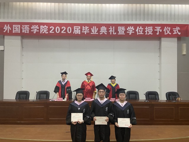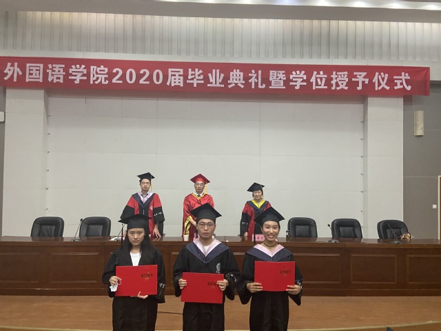 林莉兰代表学院全体师生,祝贺毕业生顺利毕业,踏上人生新里程,并希望同学们志存高远,感恩社会,感恩母校。校品学兼优毕业生、2016级英语专业毕业生朱子怡代表毕业班全体学生致答谢辞。朱子怡代表2020届外国语学院毕业生感谢学校、老师的培养,今后,谨记“进德、弘毅、博学、善建”的校训,以优异成绩回报母校的培养。