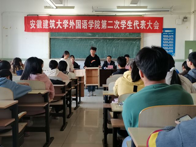 在第二阶段的会议上,外国语学院学生会主席代表学院第一届学生会向大会做了工作报告。报告实事求是地回顾了第一次学代会以来学院学生会工作取得的成绩,总结了一年以来学生会工作的探索和反思,结合存在的不足对学生会的下一步工作提出展望。