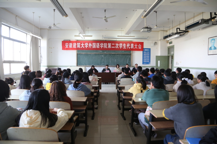 本网讯: 11月4日下午2:30,外国语学院第二次学生代表大会在主教学楼1410教室召开。外国语学院党总支书记林莉兰,副院长徐春山、张永军以及辅导员等老师出席第一阶段开幕式。外国语学院86名学生代表参加大会。大会由学院团总支书记主持。
