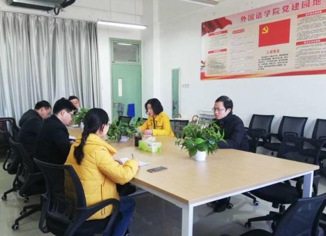 本网讯 1月14日,外国语学院在院会议室召开党总支扩大会议,举行党支部书记述职评议和年度考核。
