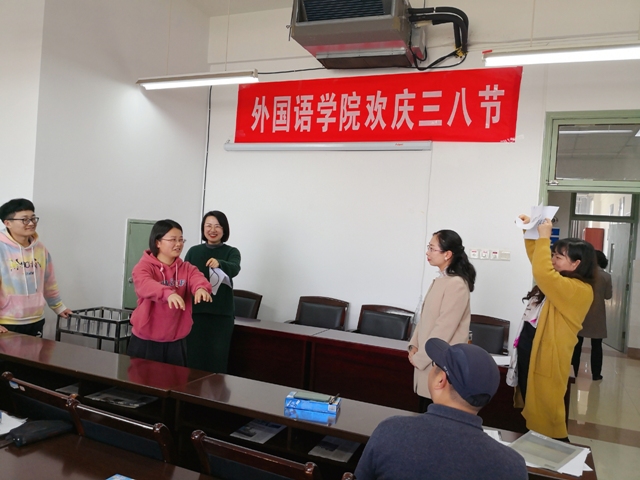 本网讯 阳春三月,天朗气清。3月24日,依照校工会《关于组织开展庆祝2021年“三八”国际劳动妇女节系列活动的通知》,外国语学院在院会议室举行庆祝三八节系列活动。