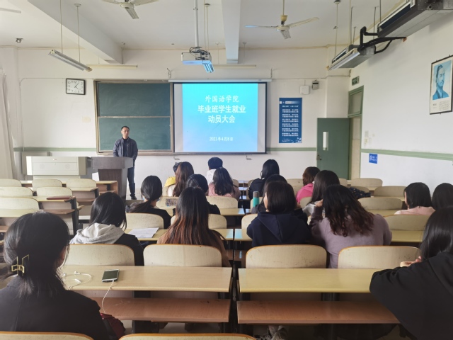 本网讯48日下午,外国语学院在1402教室召开2021届毕业生就业动员大会。学院领导、毕业班辅导员以及部分毕业生参加了会议。