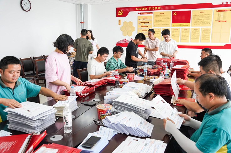 录取工作分配的合理有序,每个人各司其职。起初,学生们兵分两路,每组八名同学负责将通知书有关内容整理好移交给最后一名同学,由他来检查核对。在这同时,有专门的一名同学负责电话热线,及时回复新生和家长们对于录取提出的相关问题。紧接着,由六名同学一起负责核对通知书单页的内容,挑选出品相和印刷有问题的单页,同学们都十分严谨认真并且效率极高地完成了这项任务。最后,几位同学一同在摄影师的指导下携通知书完成了拍照宣传。