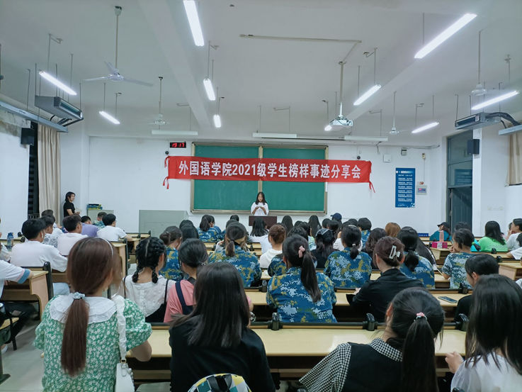 本网讯 为了帮助新生明确努力方向,树立正确价值观,外国语学院近日组织全体新生举行榜样事迹分享会,鼓励新生向大家介绍个人精神力量源泉。