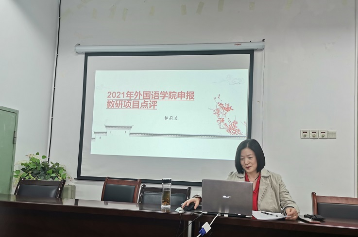 本网讯 为进一步落实“我为师生办实事”实践活动,提升教师的科研水平和项目申报质量,10月20日,外国语学院在主教楼1718会议室举办教研项目申报专题培训会,林莉兰教授应邀担任主讲。