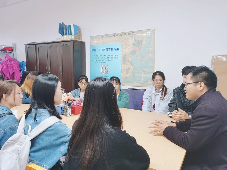 樊老师向各部长详细了解了各部门工作、职能架构及人员配备情况,并针对在工作中存在的不足,提出新要求。樊老师希望各位学生干部在今后的工作中,能够不断加强自身的素养,高标准、严要求自己,把握好利益关系,提高服务准确性,不断完善部门建设,做好“传帮带”,开辟创新路径,展示青春活力,迸发年轻力量。
