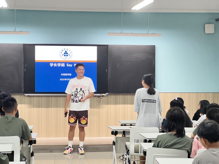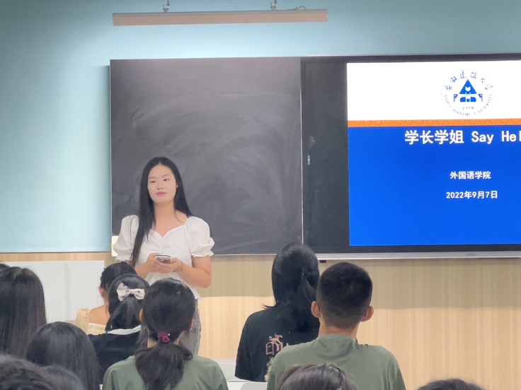 本网讯 为了给2022级新生们提供引导和帮助,外国语学院于9月7日晚为新生组织了学长学姐Say hello活动,邀请了2021级裴子涵学长和蔡雯雯学姐,分享他们对大学生活的感受,经历和建议。